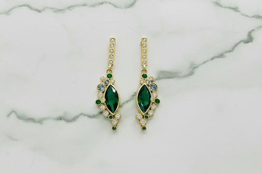 Silver earrings with green circuses.